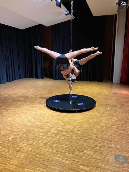 Weiter ging es im Programm und das warf viele Fragezeichen auf – was ist Pole Sport? Die beiden Akrobatinnen Bianca Strobel und Sonja Schrack-Belschner vom Studio „Passionate Pole & Sport zeigten mit viel Kraft und Ausdauer, wie an einer vertikalen Stange akrobatische Elemente in einer beeindruckenden sportlichen und ästhetischen Performance entstehen können. Die beiden betreiben diesen faszinierenden Sport in einer Perfektion, dass sie es bei den diesjährigen Weltmeisterschaften auf den 3. Platz schafften