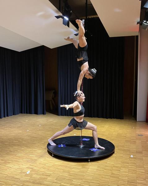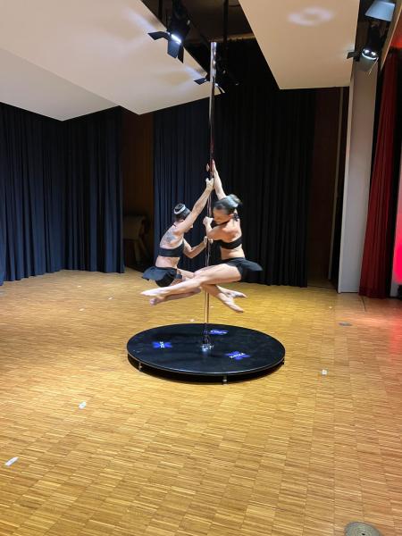 Weiter ging es im Programm und das warf viele Fragezeichen auf – was ist Pole Sport? Die beiden Akrobatinnen Bianca Strobel und Sonja Schrack-Belschner vom Studio „Passionate Pole & Sport zeigten mit viel Kraft und Ausdauer, wie an einer vertikalen Stange akrobatische Elemente in einer beeindruckenden sportlichen und ästhetischen Performance entstehen können. Die beiden betreiben diesen faszinierenden Sport in einer Perfektion, dass sie es bei den diesjährigen Weltmeisterschaften auf den 3. Platz schafften